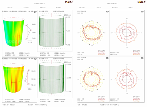威尔圆柱度仪可分别对横、纵截面进行裙线与型线测量,支持常规活塞 0° 与 180° 双侧同步测量以提升效率,异型活塞则可单侧设公差并同步分析。软件能自动过滤缺口部位保障数据准确,公差可自由编辑或导入 Excel 解析,还可保存模板实现同型号产品一键快速测量。