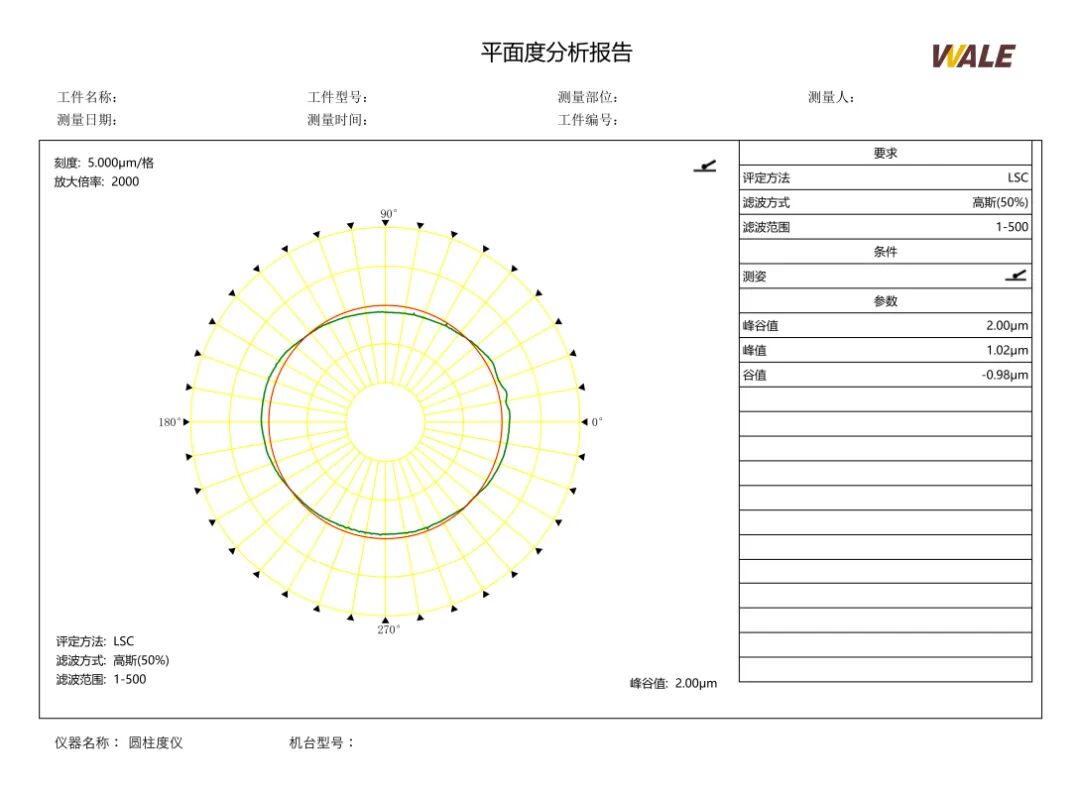 环槽底面平面度决定活塞环装配后受力均匀性,不达标会导致密封不严、漏气或异常振动。借助威尔 CYA 系列圆柱度仪的平面测量功能配合专用夹具,可对环槽底面进行高精度扫描评价,快速判定是否符合标准。